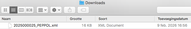 , waarna het peppol formaat bestand op je computer terecht komt in de Download folder