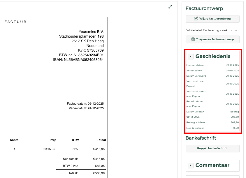 When paying an invoice within Yoursminc, the invoice will also be marked as paid within the Peppol network.